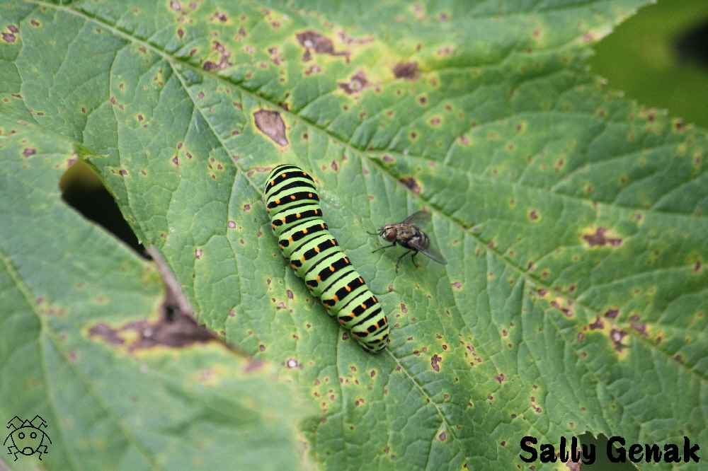 5齢幼虫ではさらに黄緑と黒のしま模様に変化する。