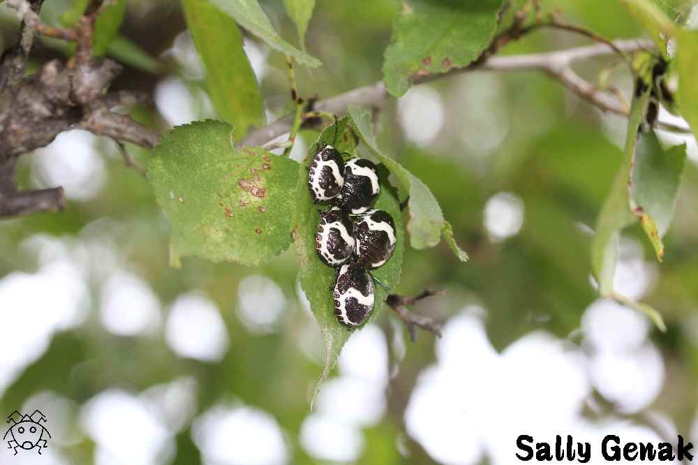 私の傑作、ニシキキンカメムシの成虫と幼虫のツーショットをご覧ください。