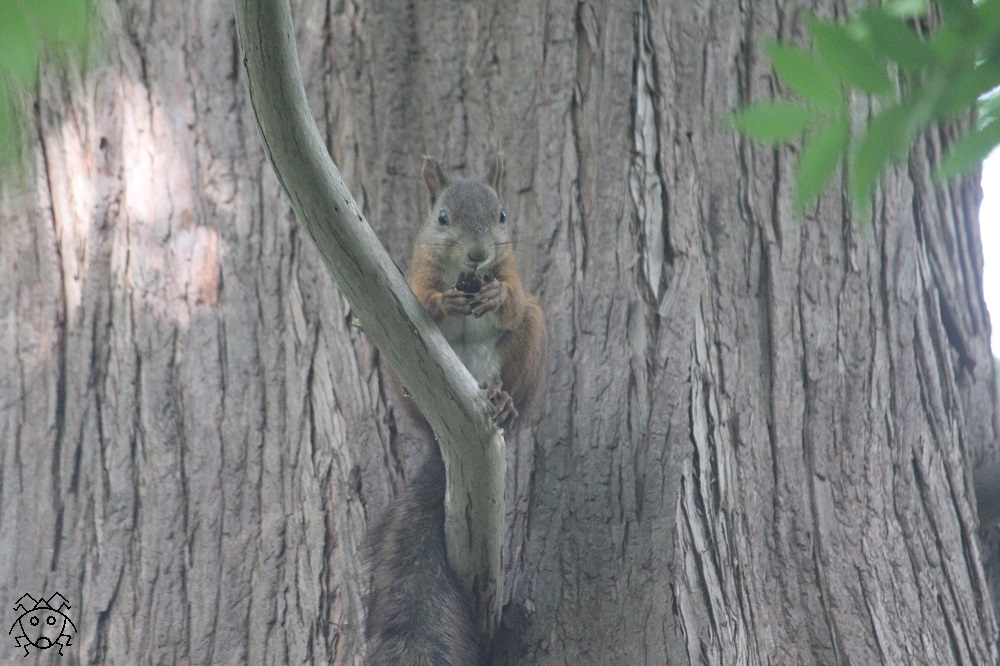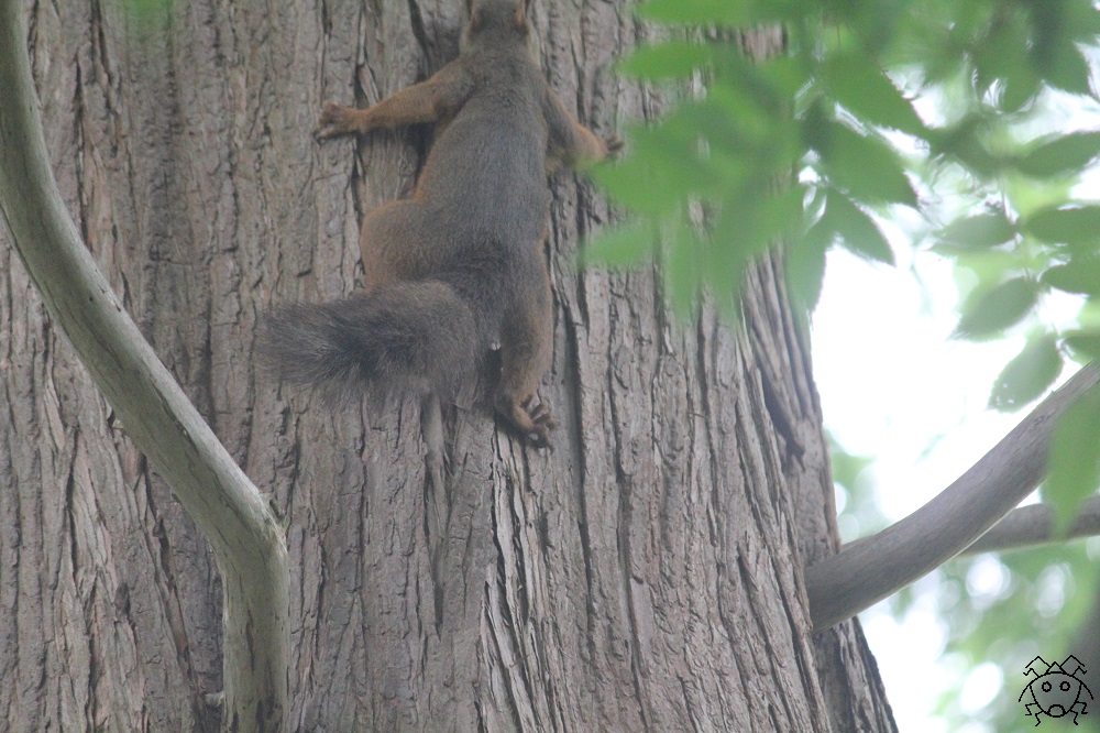 そっと近づいて見上げると、エゾリスがいた。