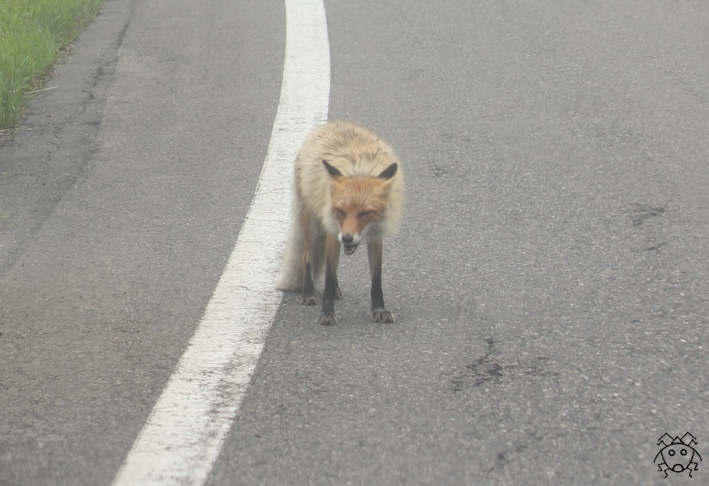 ところが、何故かキタキツネは、悠然と歩いて横切ることが多い。