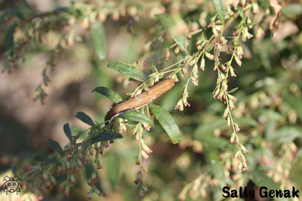 かなり不完全な擬態をする別種の蛾の幼虫が見つかる。