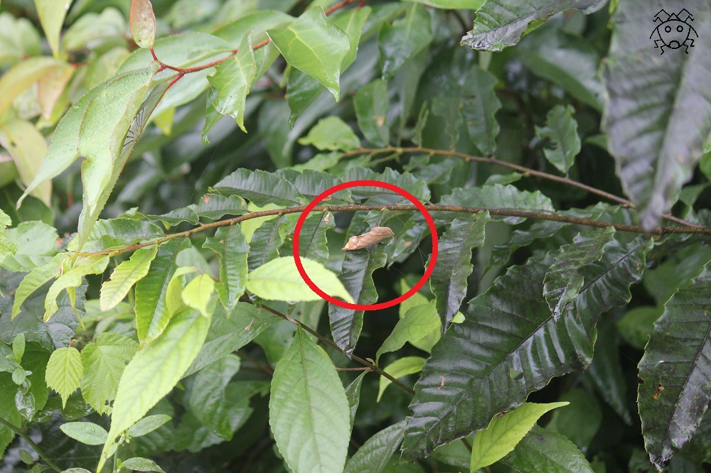 赤丸の中にある枯れ葉が、実は、キンイロエグリバなのだ。