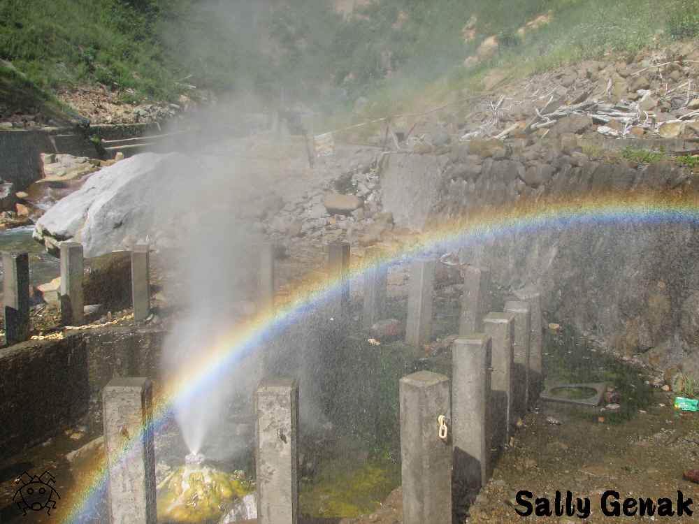 お湯が噴き出せば、太陽の角度によっては、