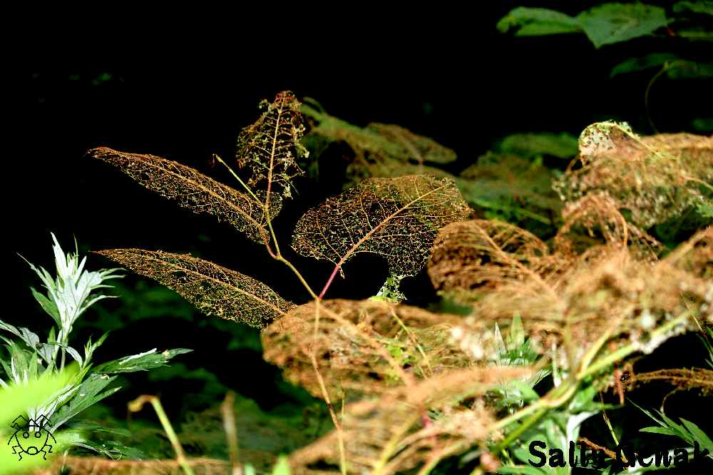 普通は、ハムシ幼虫の食痕は、