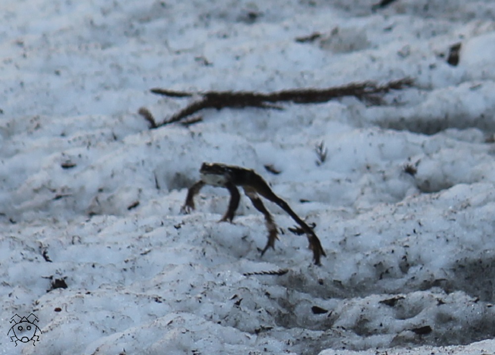 雪上のヤマアカガエル