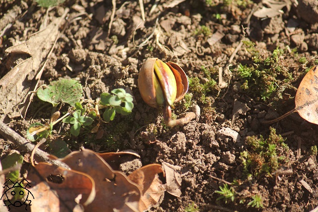 一部のドングリは、発芽していた。