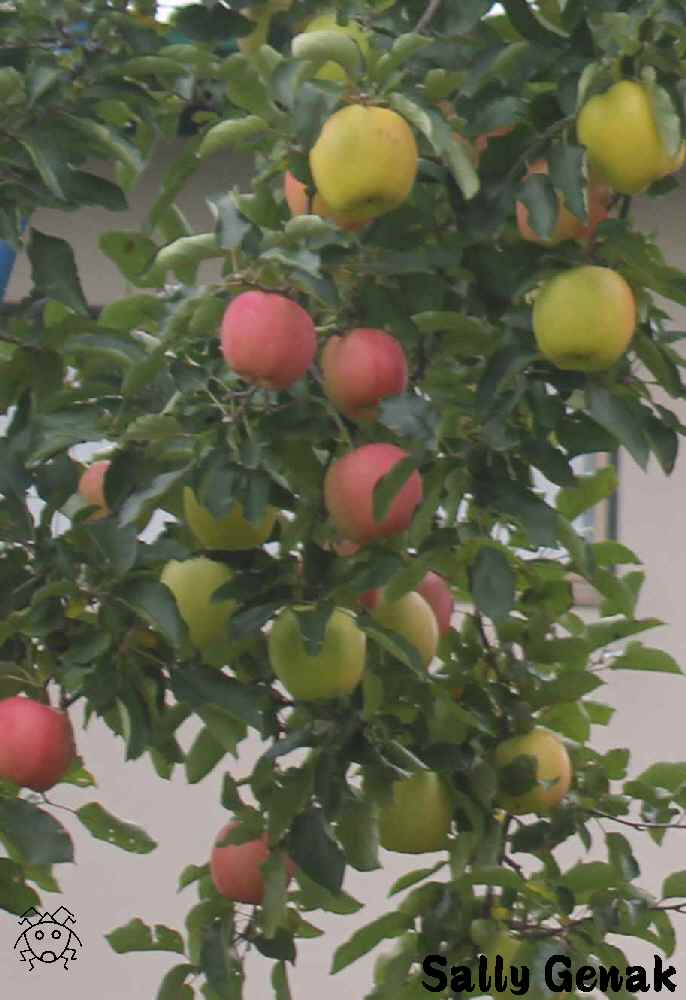 良く見ると、同じ枝に黄色と赤のリンゴが!!!