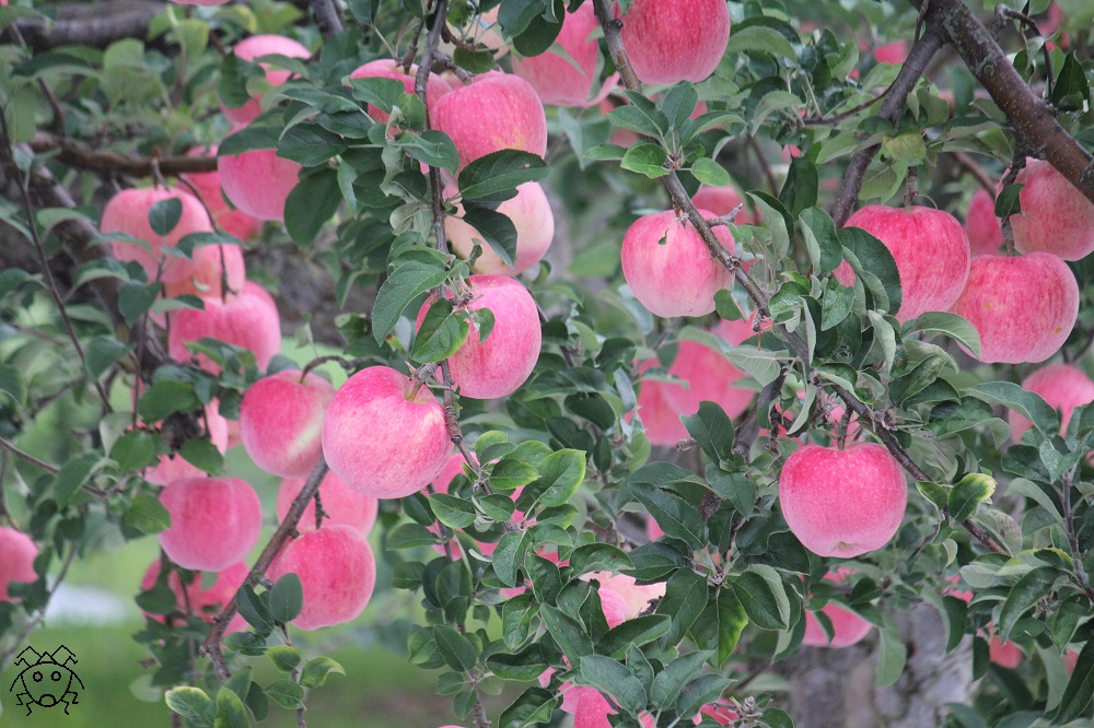 自宅から、だんぶり池に向かう途中のリンゴ園である。