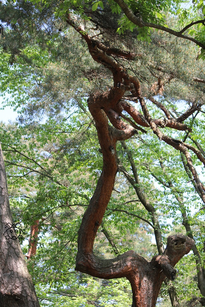 この松は、多分雪(の重さ)と戦った結果だろう。