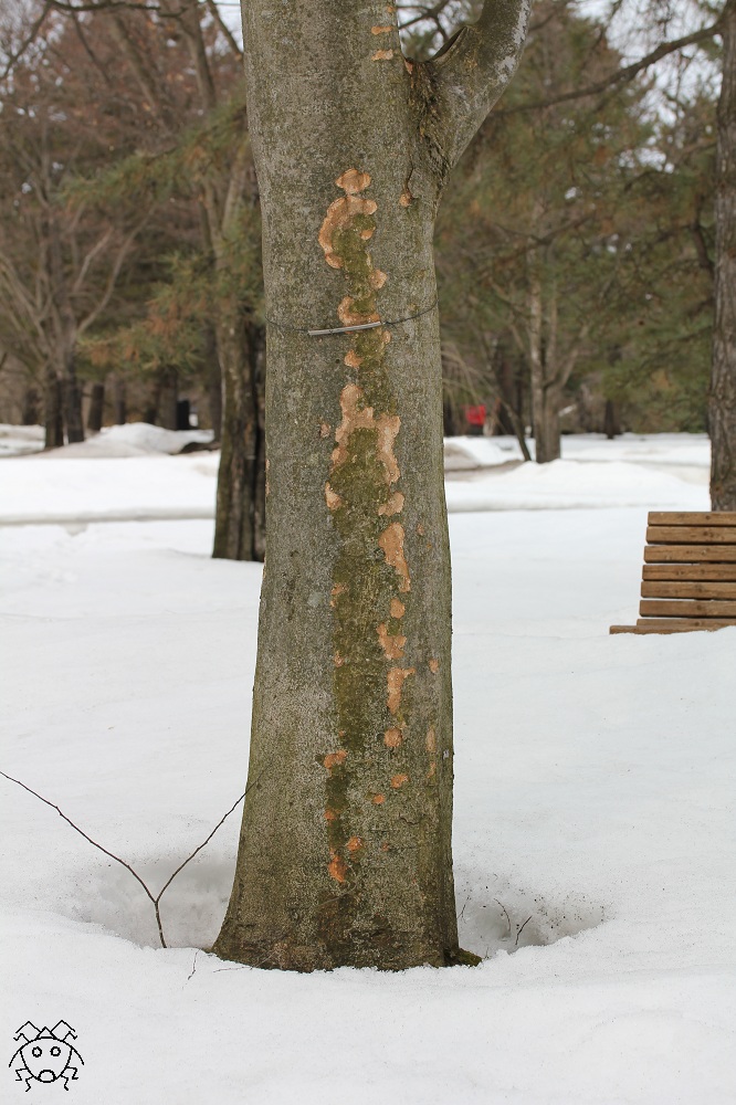 樹皮を伝って落ちてくる水の温度が高いのだろうか?