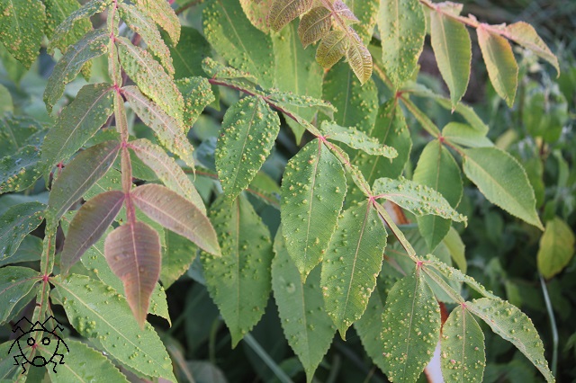 不整形のいぼ状の小突起ができ、ヌルデハイボケフシと呼ばれる。