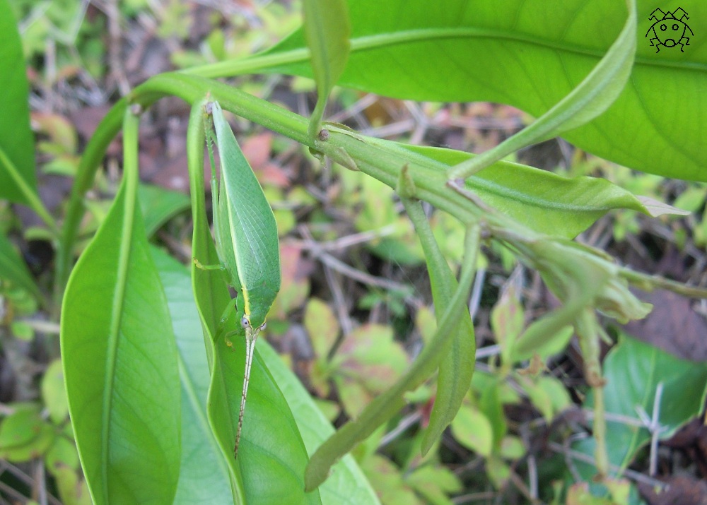偶然にも、ちょうど2年後の同じ場所で見つけた外来種アオマツムシ。