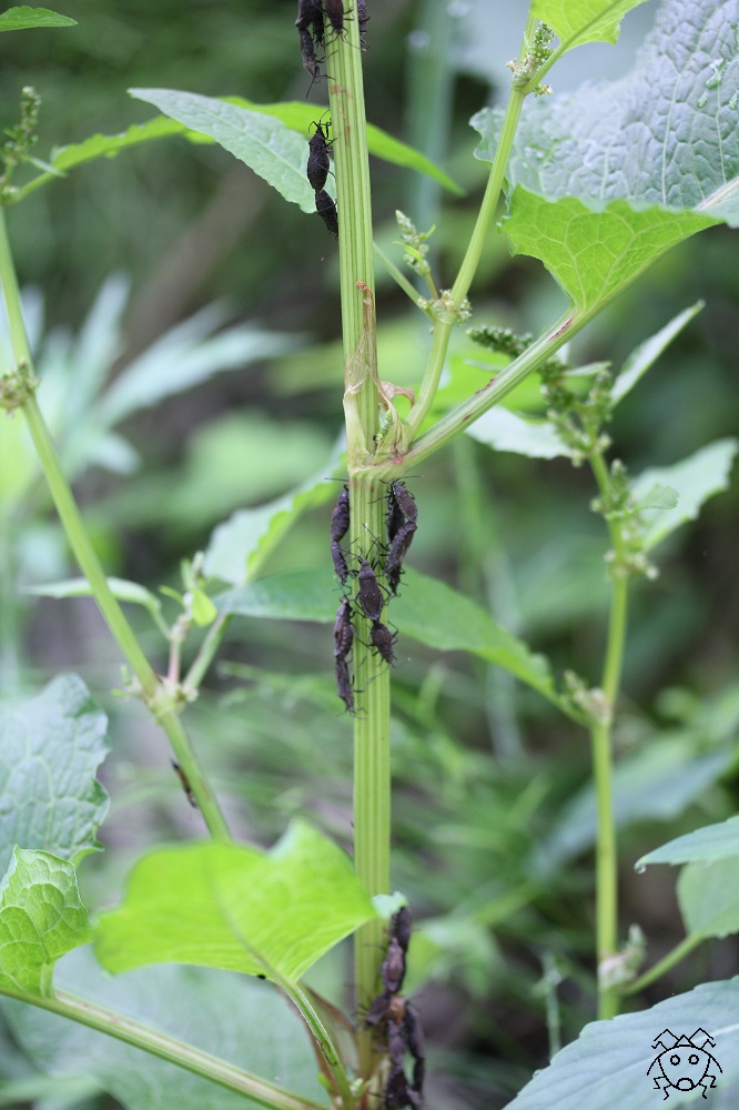 初夏のころ、青森県では、イタドリの茎などに、