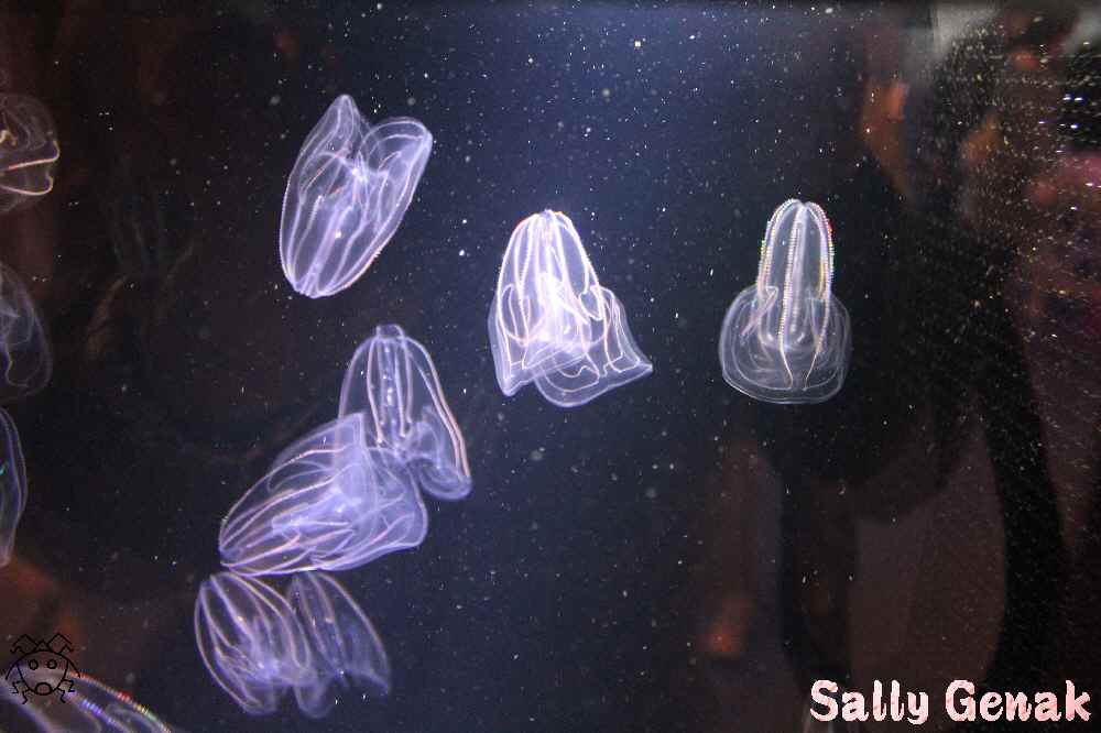 照明はけっこう暗めで、クラゲの輪郭と櫛の部分が目立つようにしている。