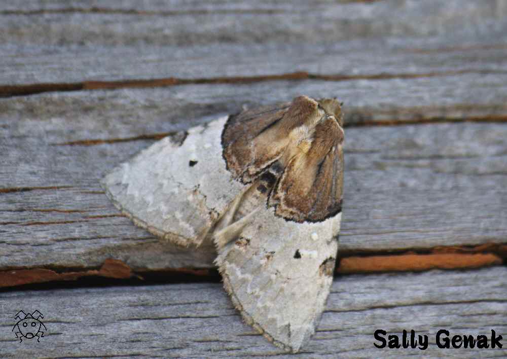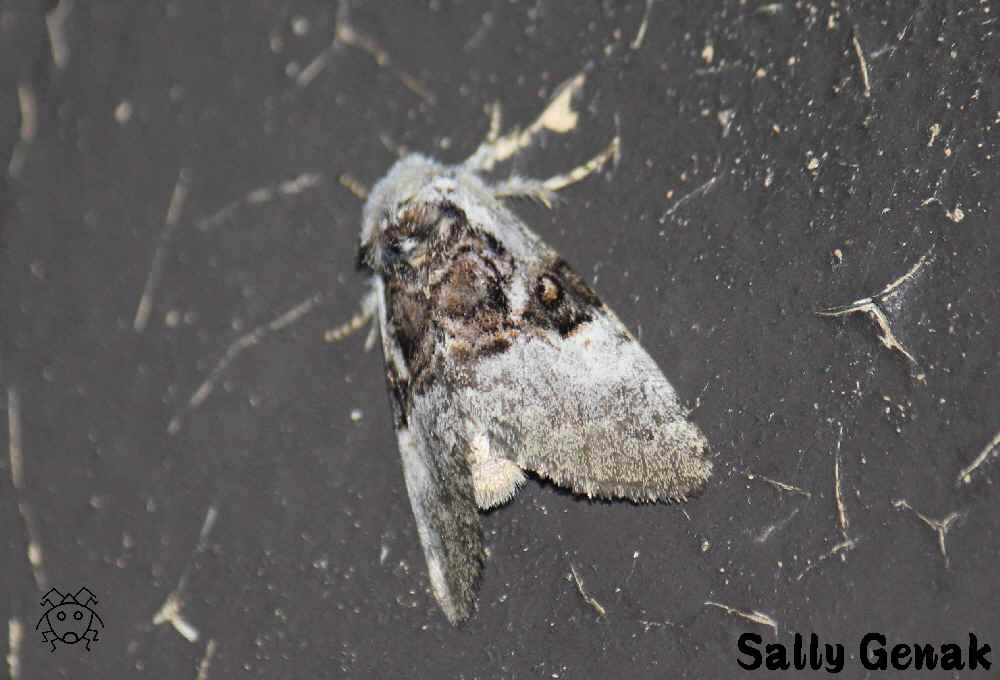 灰色の目立たない蛾であり、幼虫がこれだけ違うのに、