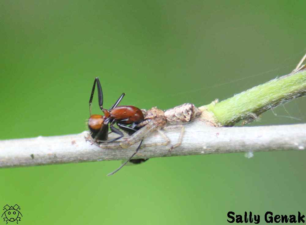 トラフカニグモの仲間は、何とアリをメインに捕食する。