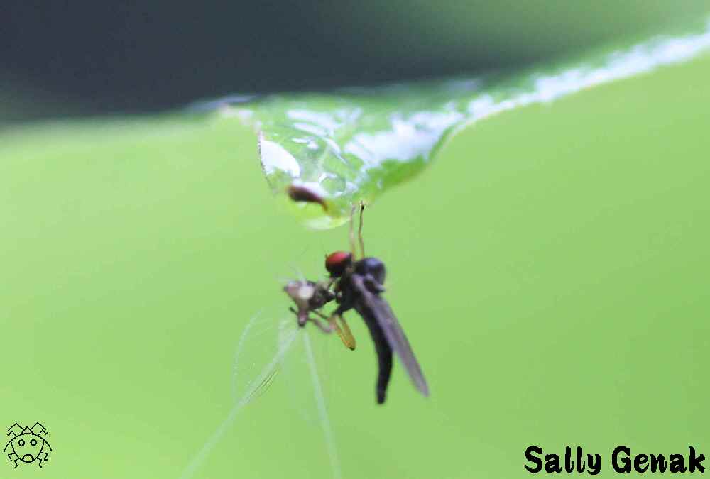 やや小さめのムシヒキアブがカゲロウの仲間を捕食中。