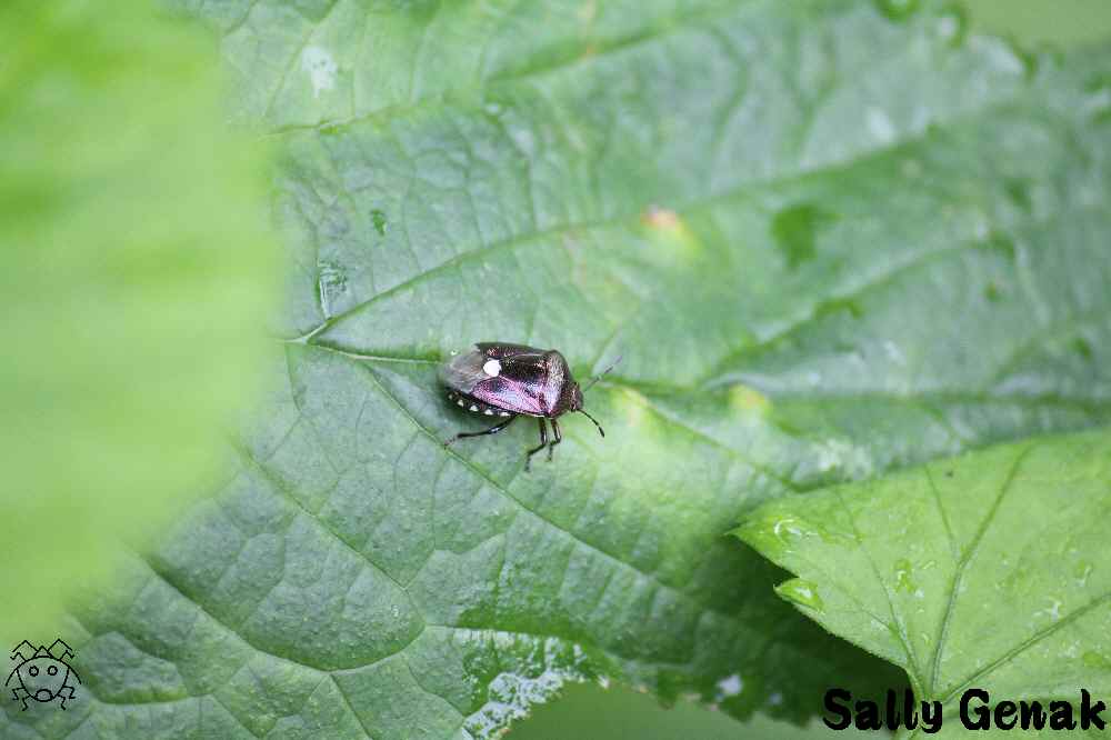 腹部全体を覆うような小楯板に7個の青黒色の点がある。