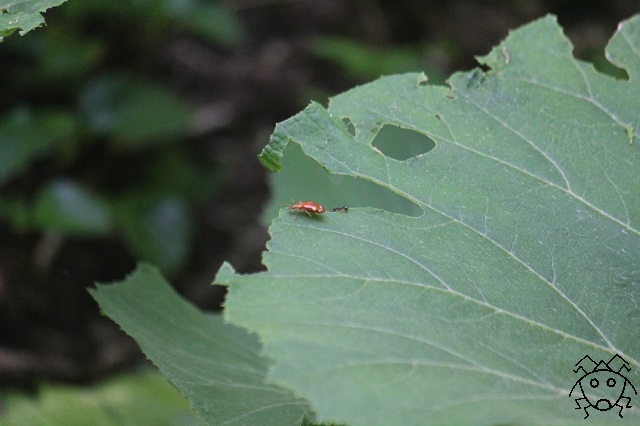 オレンジ色のゴミムシは、遠くからでもよく目立つ。