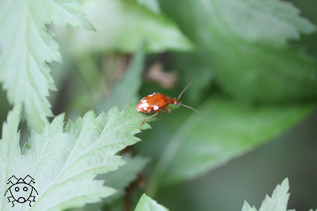 ヤホシゴミムシという鮮やかなオレンジ色の体に、