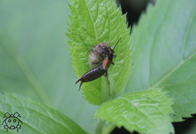 ハサミムシの方は、食事を中断して、邪魔そうにしていた。
