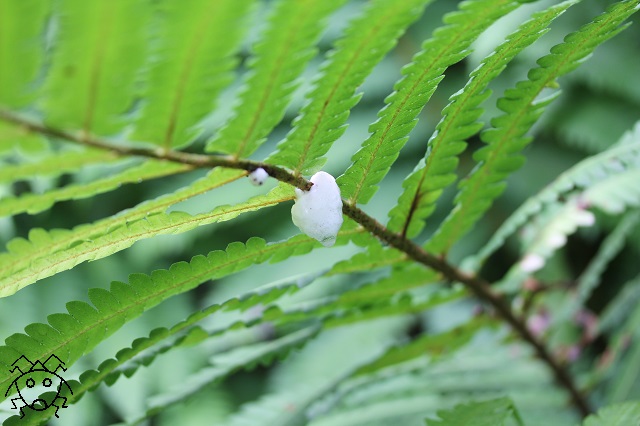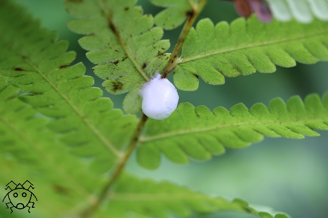 しかも、その泡は、シダの葉っぱの裏側にあるので、