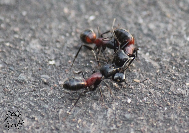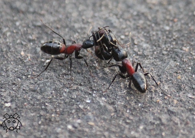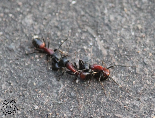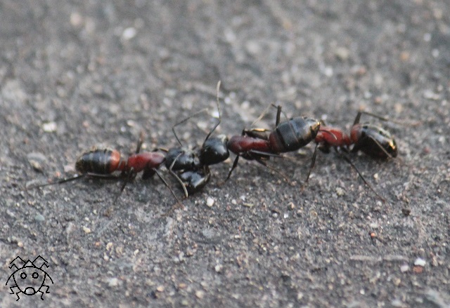 ムネアカオオアリが3匹、道路の真ん中で、