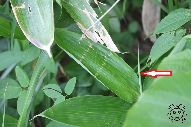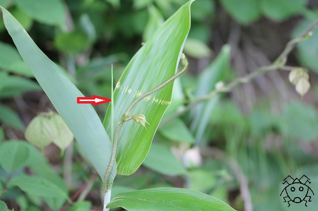 また、ササの葉の上で偶然見つけた、
