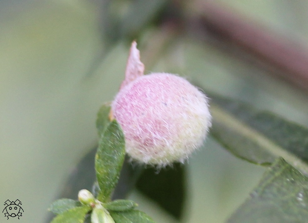 球形で、よく見ると短い突起がある、なかなか美しい虫えいだ。