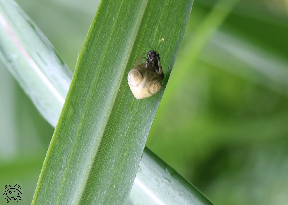 水辺にあるススキなどのイネ科植物の葉っぱで撮った。