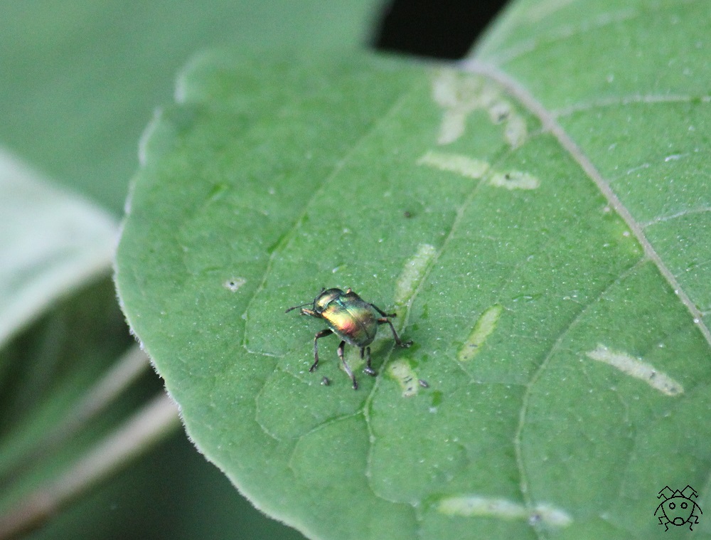 小さな金属光沢のある虫をみつけた。