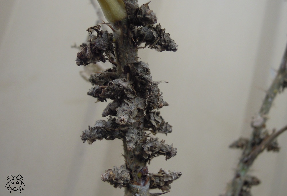 沢山のミノムシが、バラの棘のようにも見える。