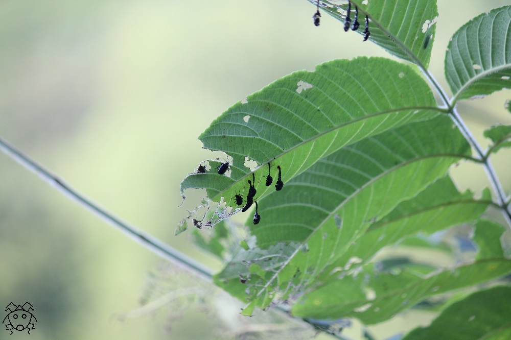 見ての通り、蛹も警戒色でよく目立ち、いかにも不味そうである。