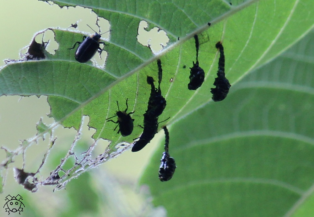 クルミハムシの成虫が、2匹見える。