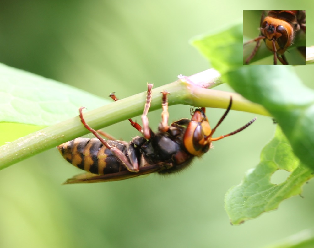 典型的な警戒色の、怖いハチの姿である。