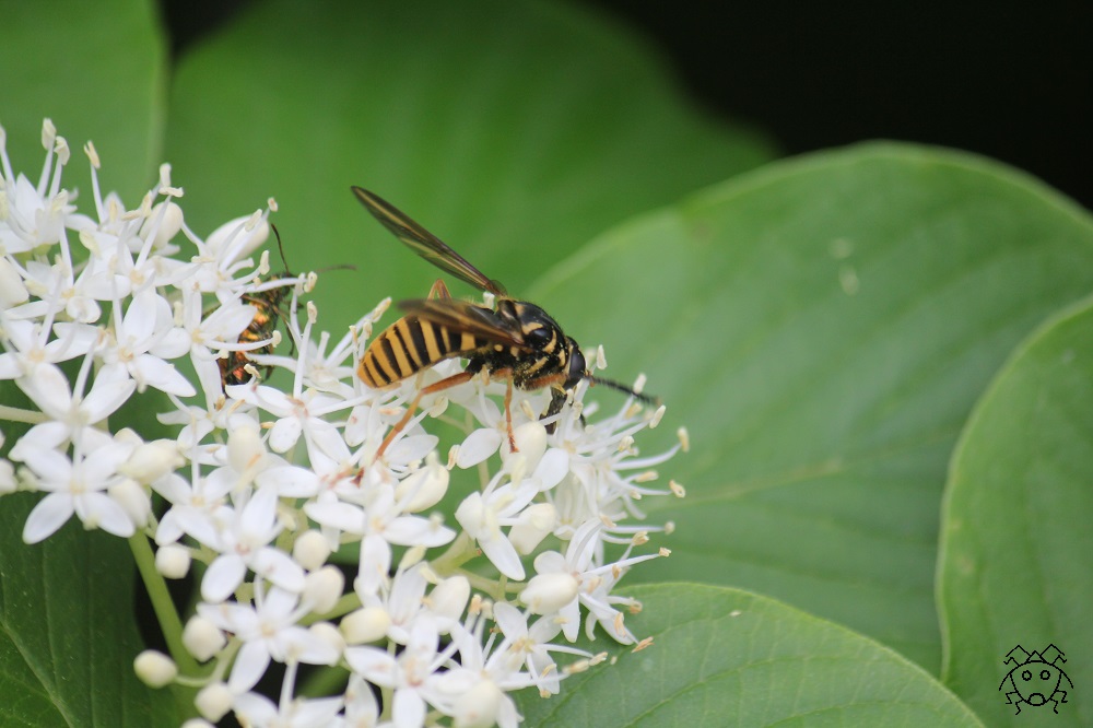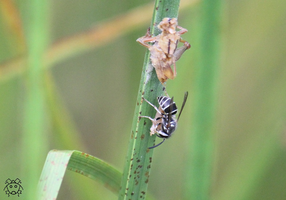 黄色い線が入り、スズメバチの仲間である。