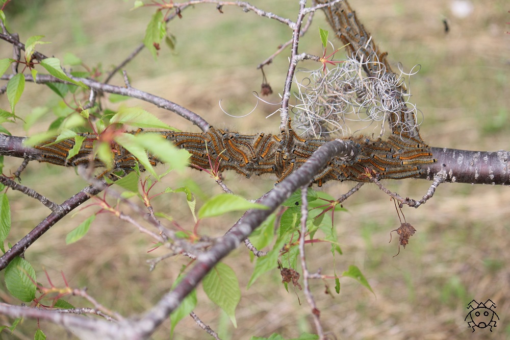 クワコ幼虫の目玉模様は、アケビコノハ幼虫と違って、