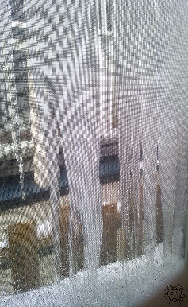 水平の葉っぱの上に落ちて、隙間なくぴったりと葉っぱに密着して、