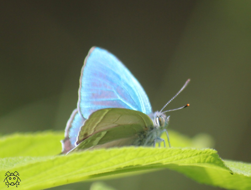 中には、こんな青い模様の蛾もいるし(フクラスズメ)、