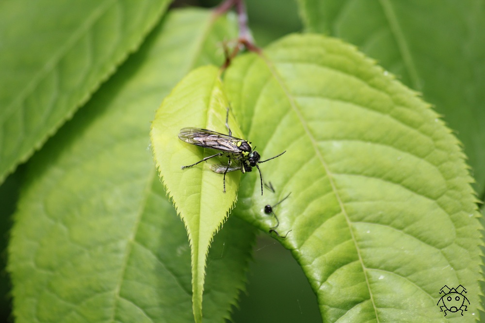 白岩森林公園の林道で、異常な動きをする2匹のハバチを、