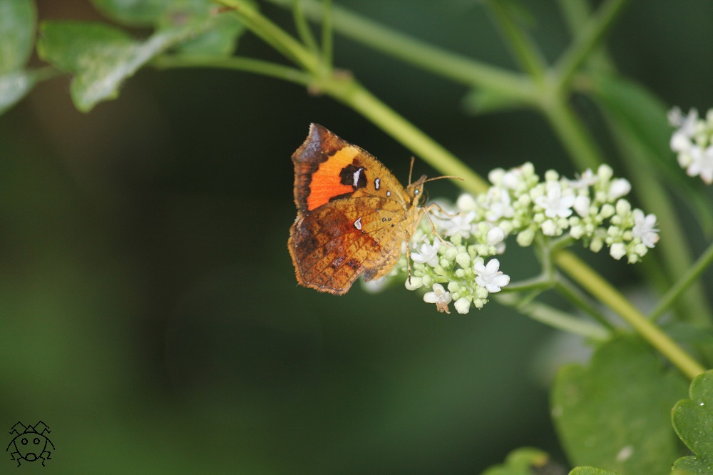 鮮やかなオレンジ色の模様と相まって、翅を閉じて止まるし、