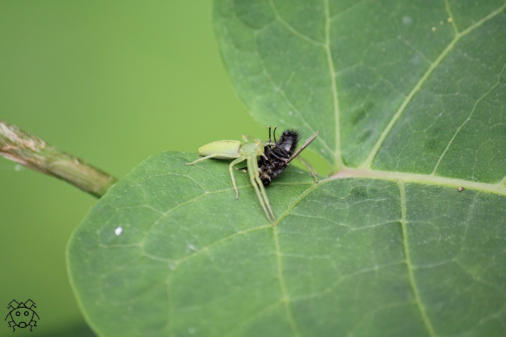 ワカバグモがハエの仲間を捕獲