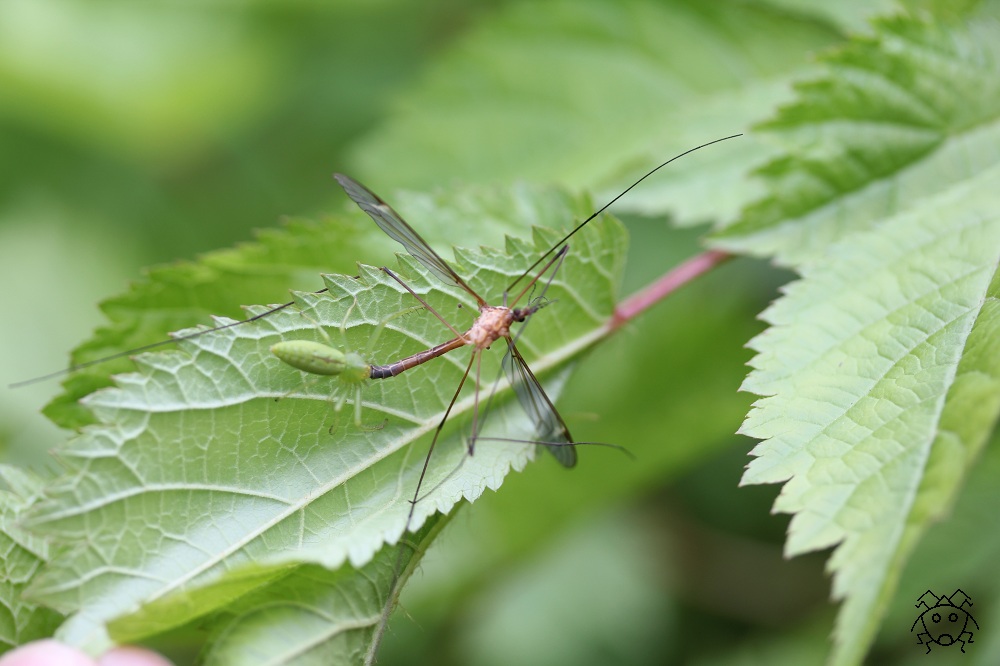 ワカバグモがガガンボの仲間を捕獲