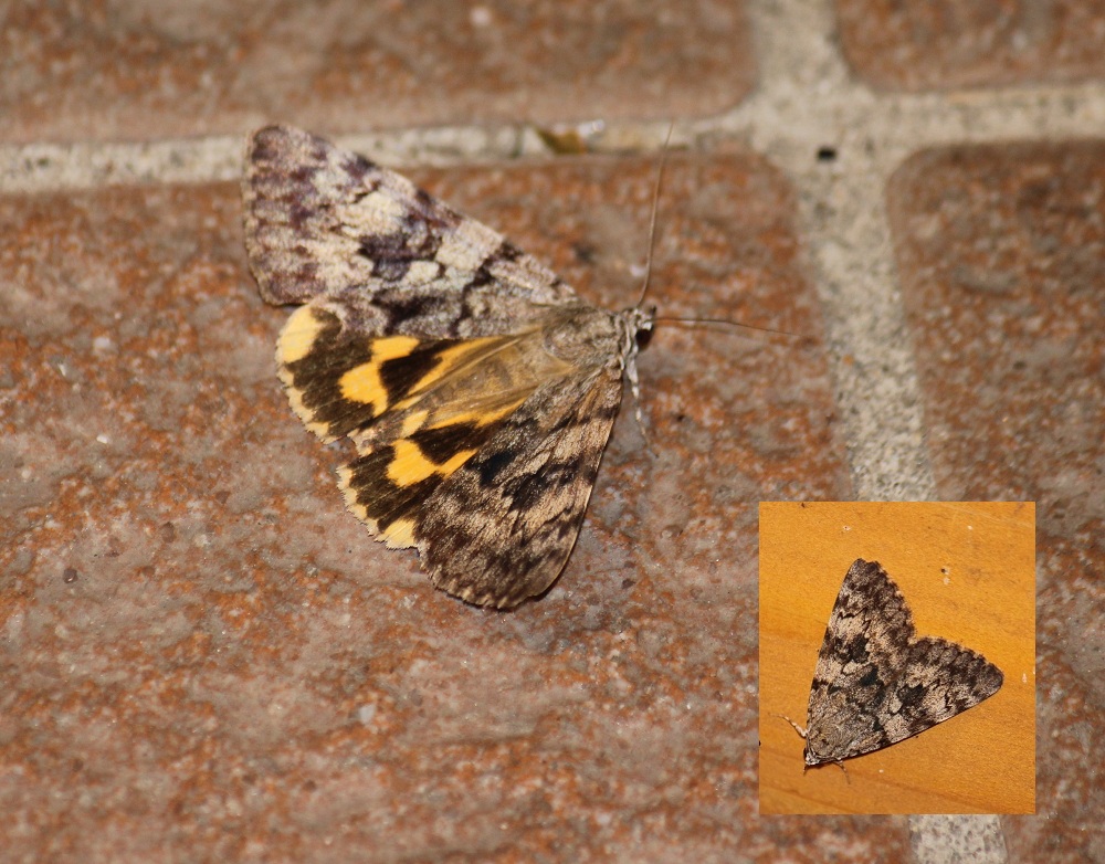 普通に静止しているときの前翅表面は、典型的な保護色(右下写真)である。