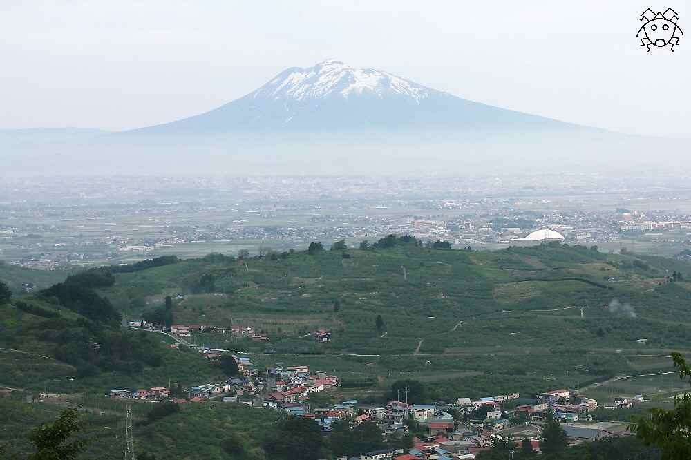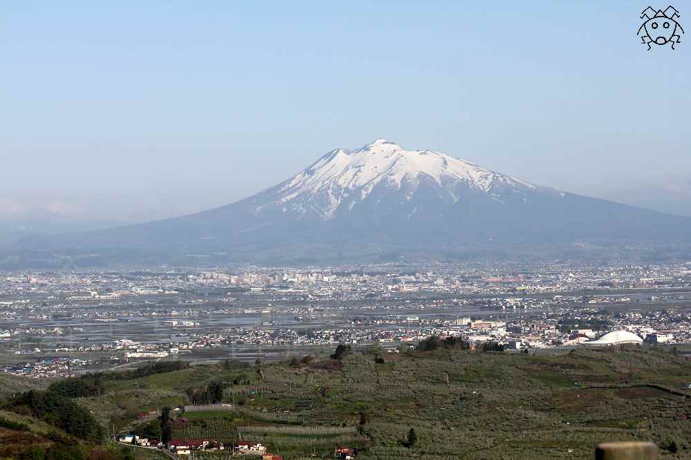 弘前市内をはさんで反対側に、独立峰(?)である岩木山が見える。