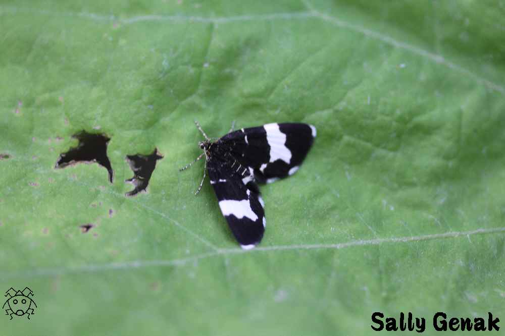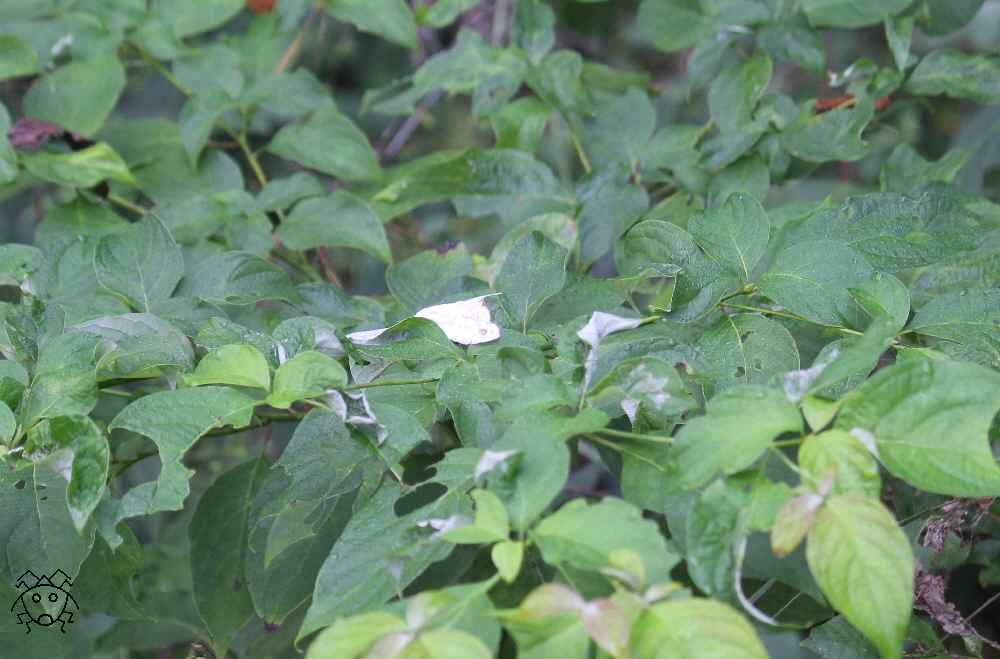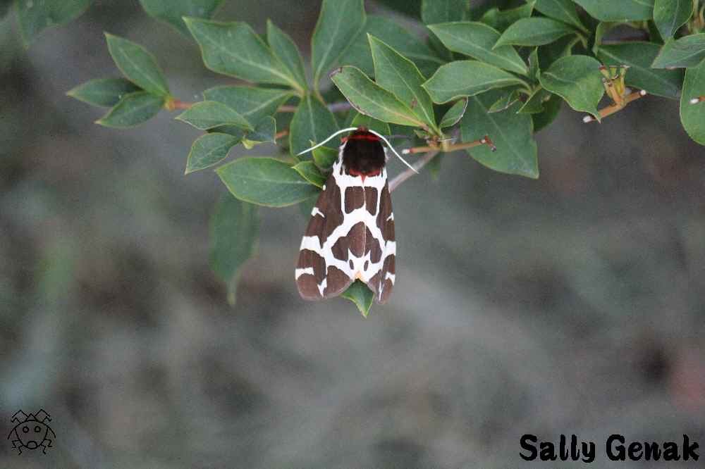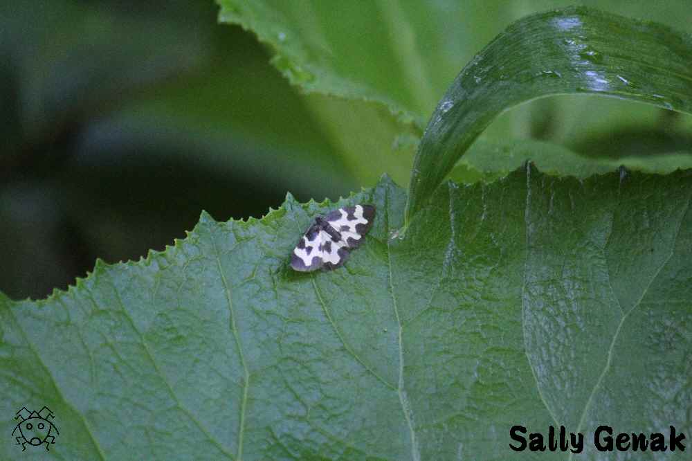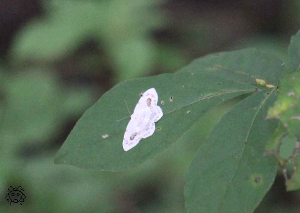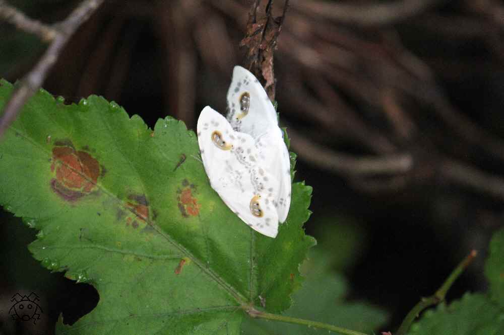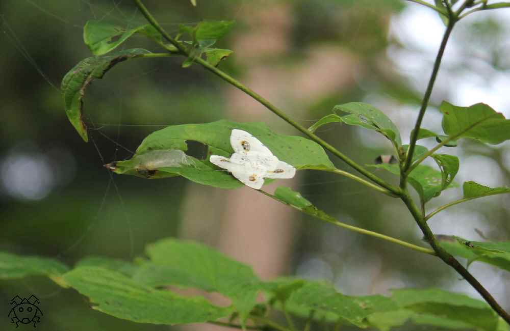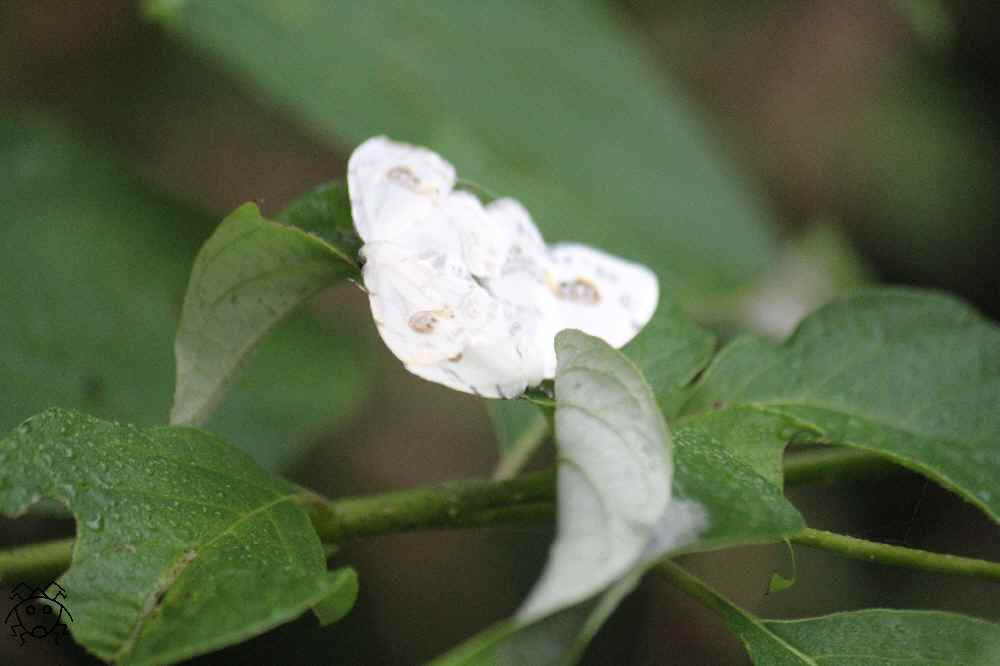 葉っぱの上に、全く隠れようとせずに止まっている白い蛾!!