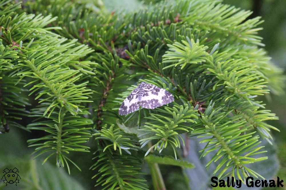 シロスジオオエダシャクは、私の気配を感じて、飛んで逃げた後、