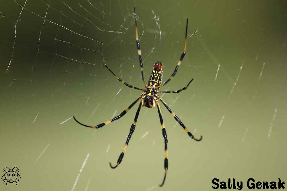 このクモは、黄色と黒の鮮やかな縞模様なので、