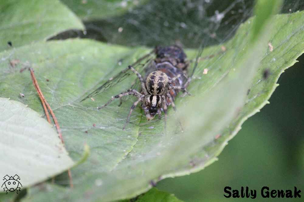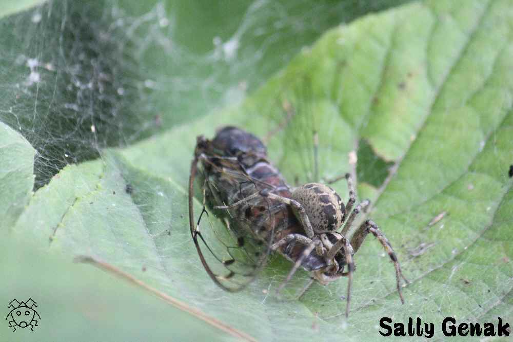 ハシリグモの一種がセミを捕獲