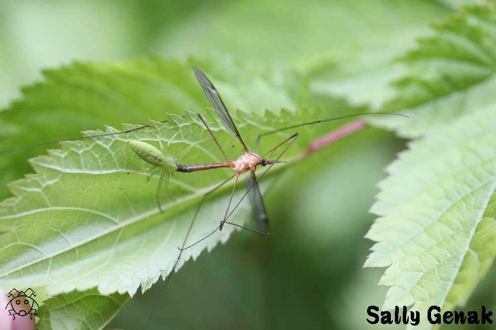 ワカバグモがガガンボを捕獲
